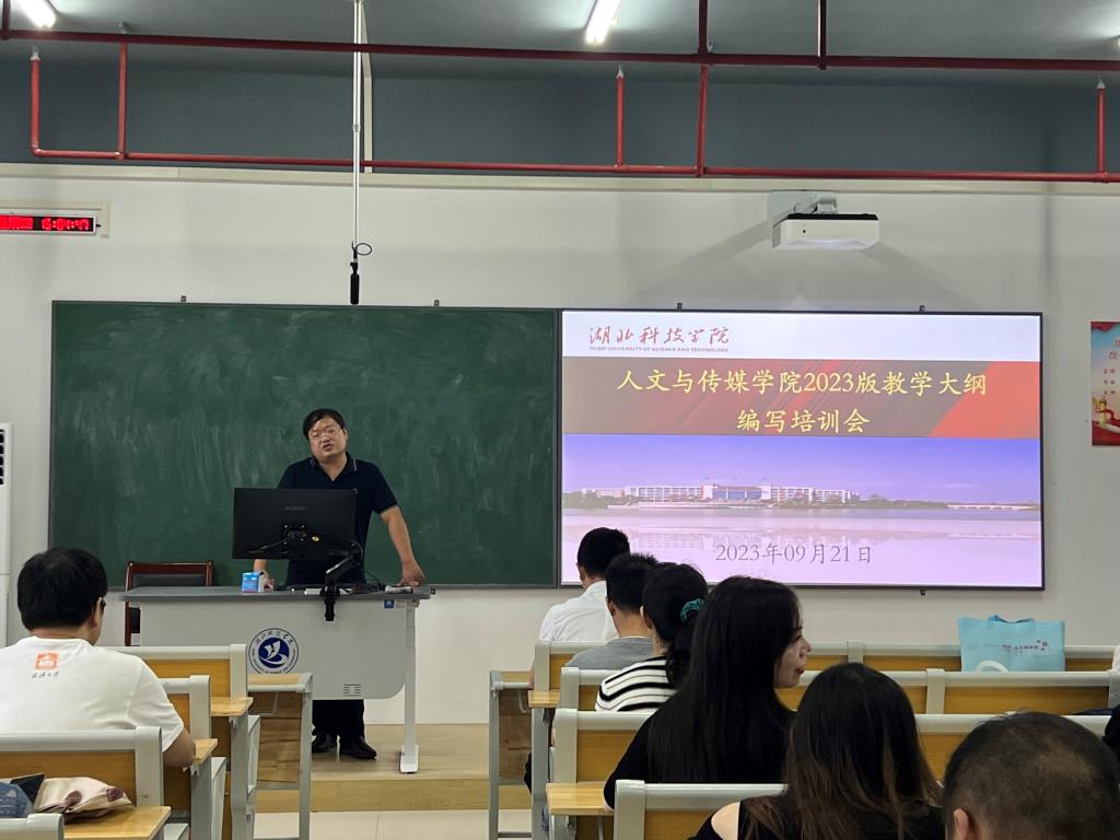 为促进本科教学规范化建设和提高本科教育教学水平,william英国中文于2023年9月21日在实训楼420举行了2023版教学大纲编写培训会。培训会由william英国中文院长郭彧主讲,william英国中文副院长谭辉煌主持,全体教师参加。
