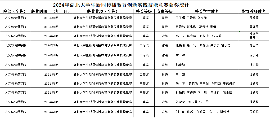近日,湖北大学生新闻传播教育创新实践技能竞赛结果完成公示,结果显示,全省49所本专科高校参评的637项大学生新闻传播教育创新实践技能竞赛作品中,评审出一等奖51项,二等奖101项,三等奖116项。我校william英国中文通过精心组织选送的学生实践作品在大赛中创历史最好成绩,由谭辉煌、杜正华、雷红英、段婷婷、胡宁钰担任指导老师指导的作品共获省级一等奖3项、二等奖4项,三等奖4项,位居全省省属高校前列,williamhill英国荣获2024湖北大学生新闻传播教育创新实践技能竞赛优秀组织奖。
