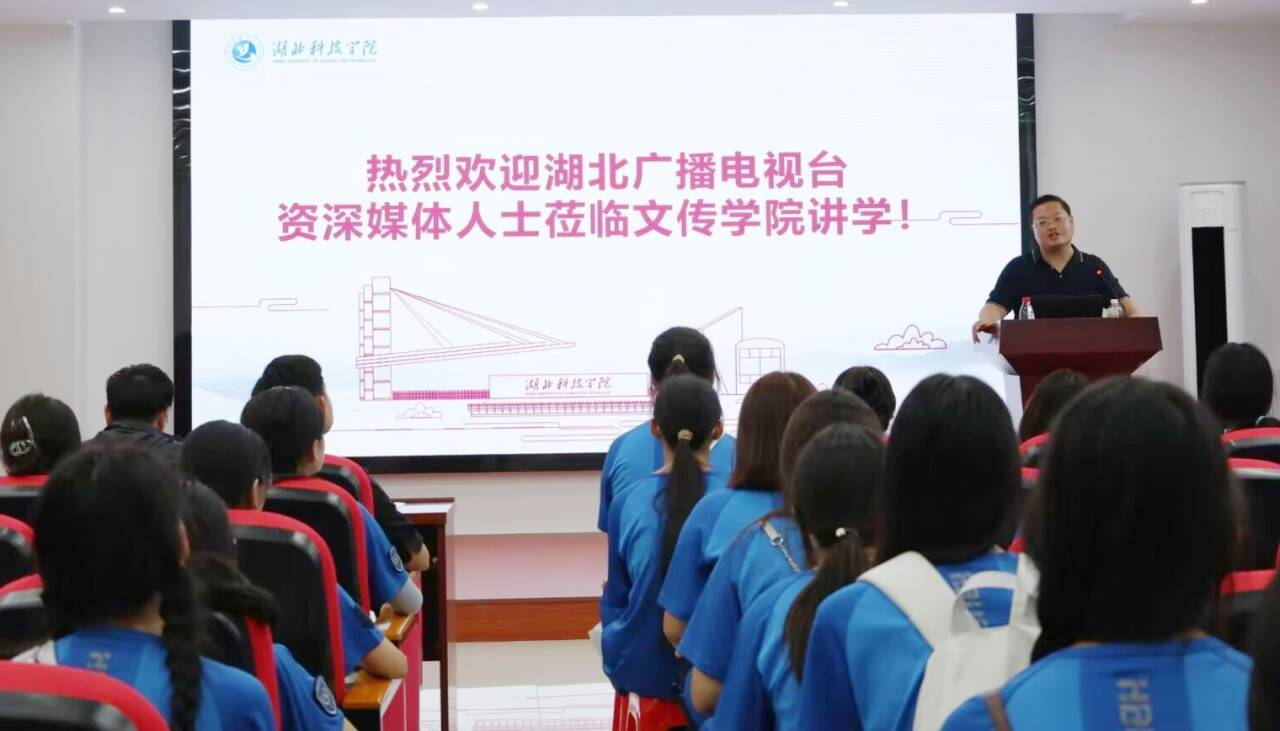 为提升我院广播与电视编导和网络与新媒体专业学生的专业素养,培养符合时代要求的高质量人才。9月14日,william英国中文邀请湖北广播电视台教育频道副总刘伟来我院讲学,这也是我院传媒教育论坛开讲的第八期。院党委书记杨纯新、院长郭彧、副院长兼鄂南文化研究中心主任何岳球、副院长谭辉煌、网络与新媒体专业负责人杜正华以及2024级广播与电视编导、2024级网络与新媒体全体新生120余人参加了本次讲座。讲座由院长郭彧主持。
