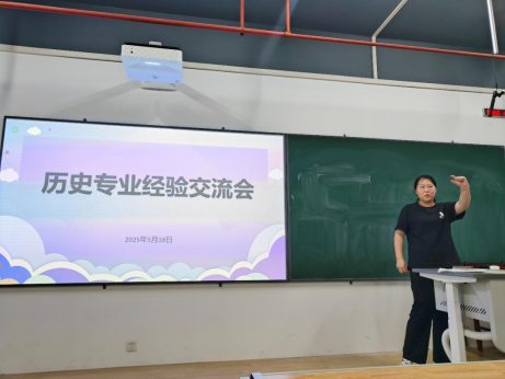 2025年5月18日晚,在揽胜楼402教室,21级历史学专业的优秀学子段康明、朱嘉琦与易桐旭携手为22级和23级的学弟学妹们带来了一场精彩纷呈、干货满满的经验分享会。
