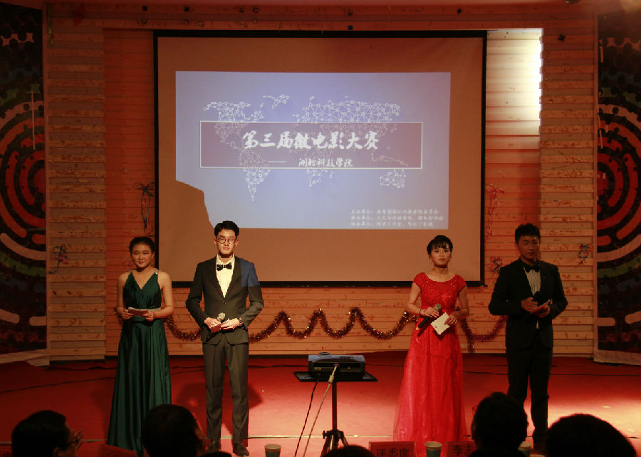 大赛开始,第一部播放的影片是由张增强同学带领的团队所拍摄的《迷途》,以主角的迷茫与失落折射出大学生中普遍存在的精神虚无现象,鼓励大学生们找到自己的奋斗目标。而李国祥团队充分发挥了技术上的优势,在微电影中加入了别具匠心的特效,与其精巧的构思一起,将科幻融入作品,为同学们带来了紧张激烈的《月庄游戏》,最后一部作品是由颜嘉成团队带来的亲情大作《合影》,悲伤而温暖的故事在娓娓道来的同时流动着脉脉温情,以一张无法实现的全家福为载体,讲述了一个“子欲养而亲不待”的故事。