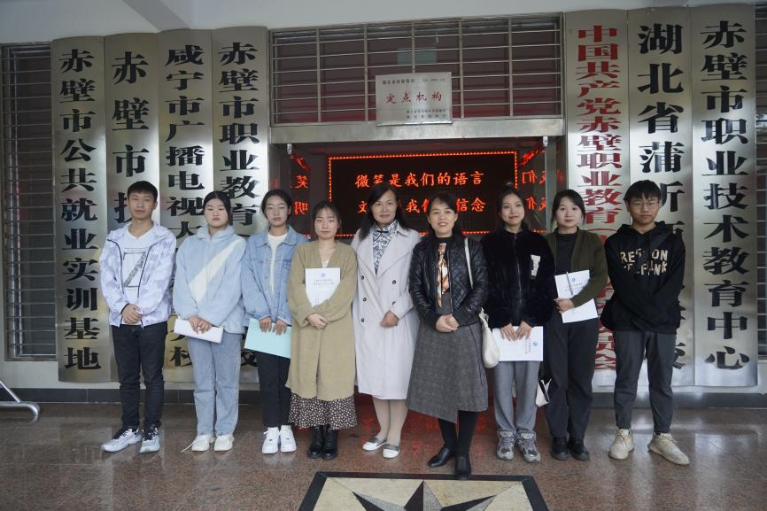 我院指导老师夏红星(右五)、张霞(右四)与实习生在赤壁市职教集团合影