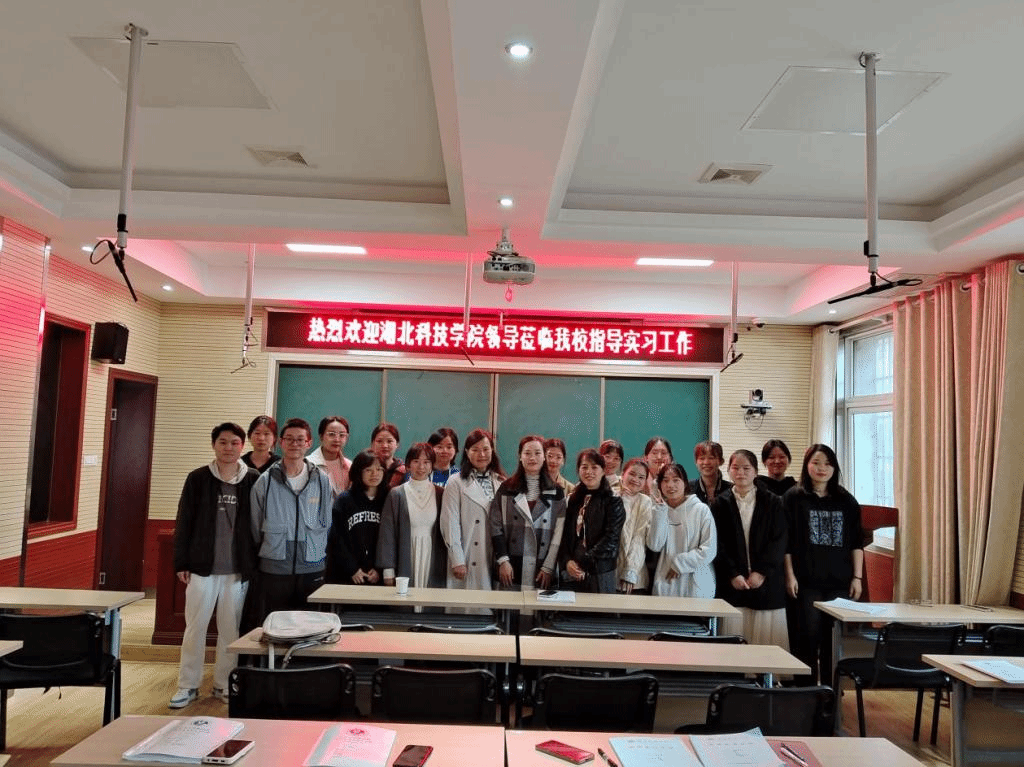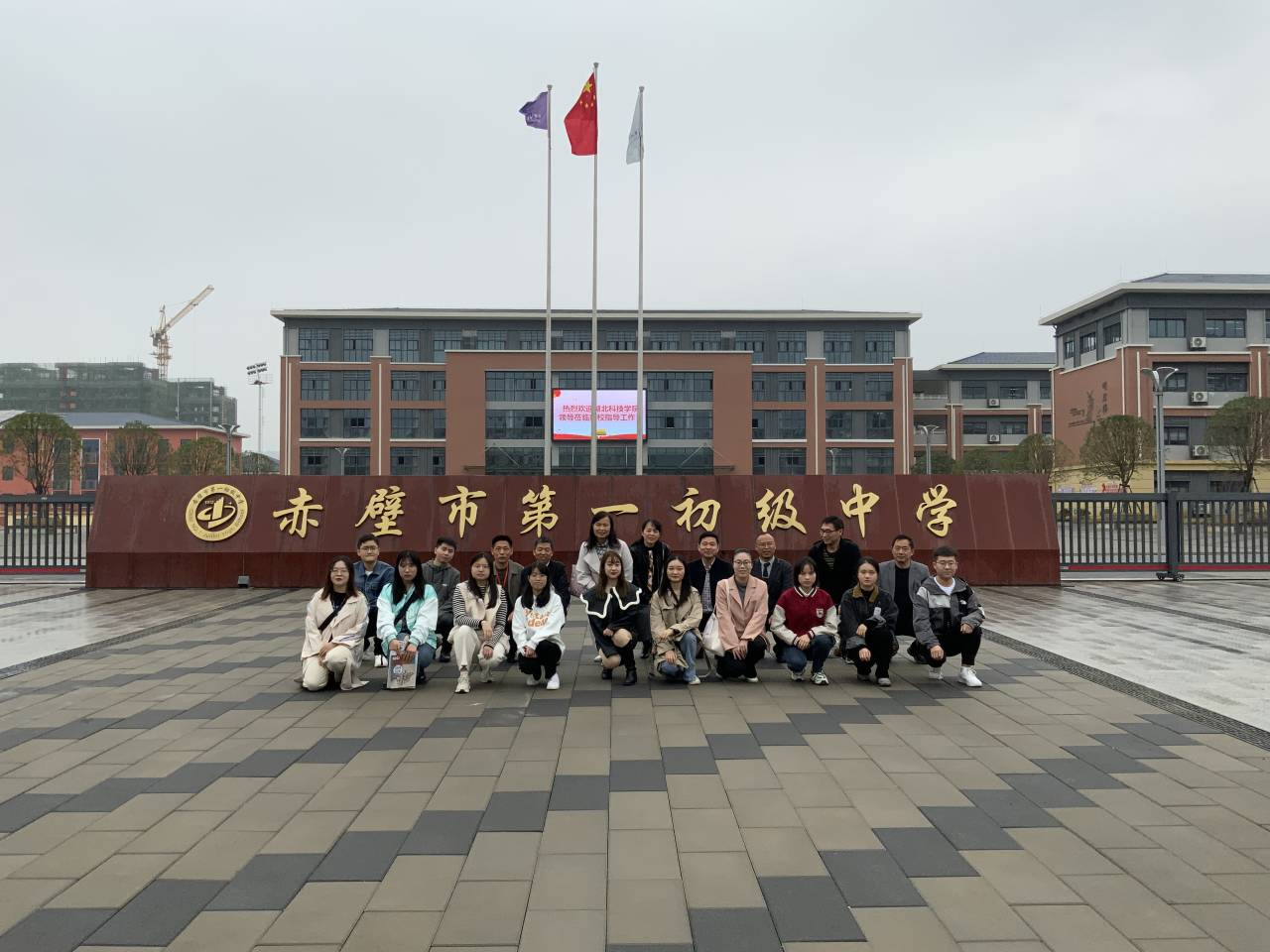 我院指导老师夏红星(后排左五)、张霞(后排左六)与赤壁一初中领导和实习生合影