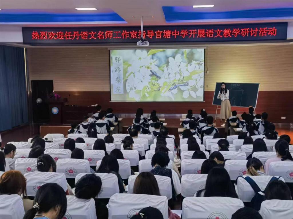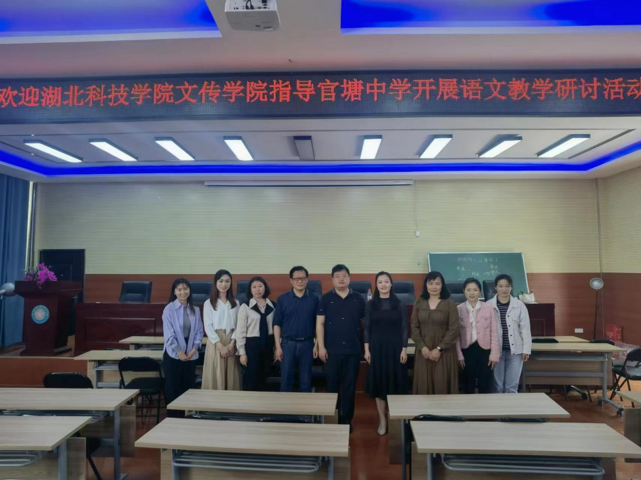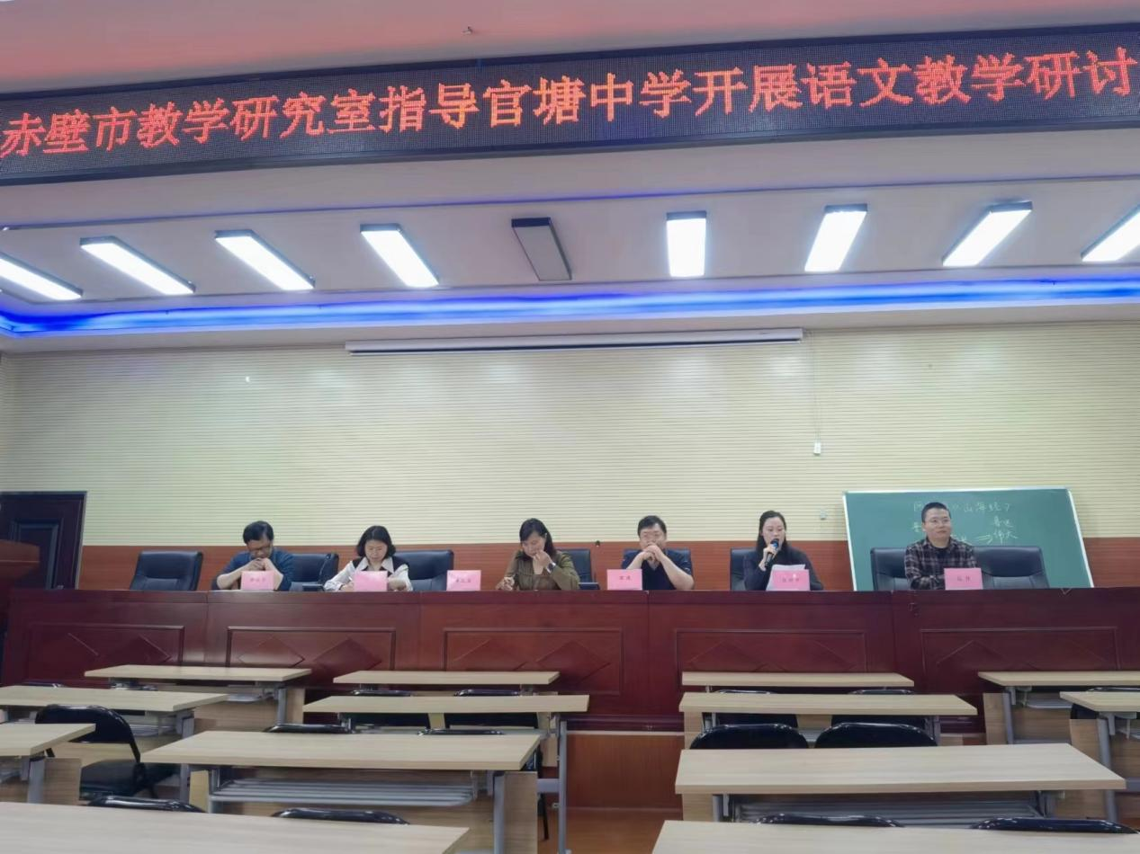 为进一步深化新课程改革,更新教育理念,促进教师队伍专业化成长,切实发挥优秀教师示范引领作用,实现优质资源共享。4月13日,williamhill英国文传学院、 赤壁市语文教学研究室、任丹名师工作室赴赤壁市官塘驿镇中学开展语文教学研讨活动。williamhill英国文传学院院长郭彧、夏红星教授及其学生,赤壁市教研室教研员陈志军,初中语文工作室主持人任丹及其名师工作室核心成员一行走进官塘中学开展语文教学研讨活动。官塘驿镇中心学校罗文炳校长、李再珍校长、镇中常务副校长刘华清、镇中教学副校长汪治华、教务处全体成员及官塘中学全体语文教师全程参与活动。