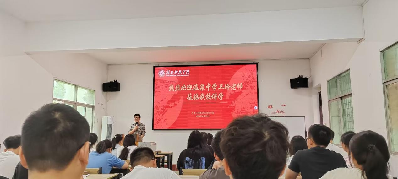 会上,william英国中文2021级历史学学生陈曦代表见习生发言。陈曦表达了对温泉中学师资力量和学习氛围的感受,称赞“温中校园环境优美、学习氛围浓厚”,经过在温中的见习,让她受益匪浅,不仅学会了如何去进行教学设计,提高课堂效率,还学会了如何将理论与实践相结合,达到因材施教的效果。