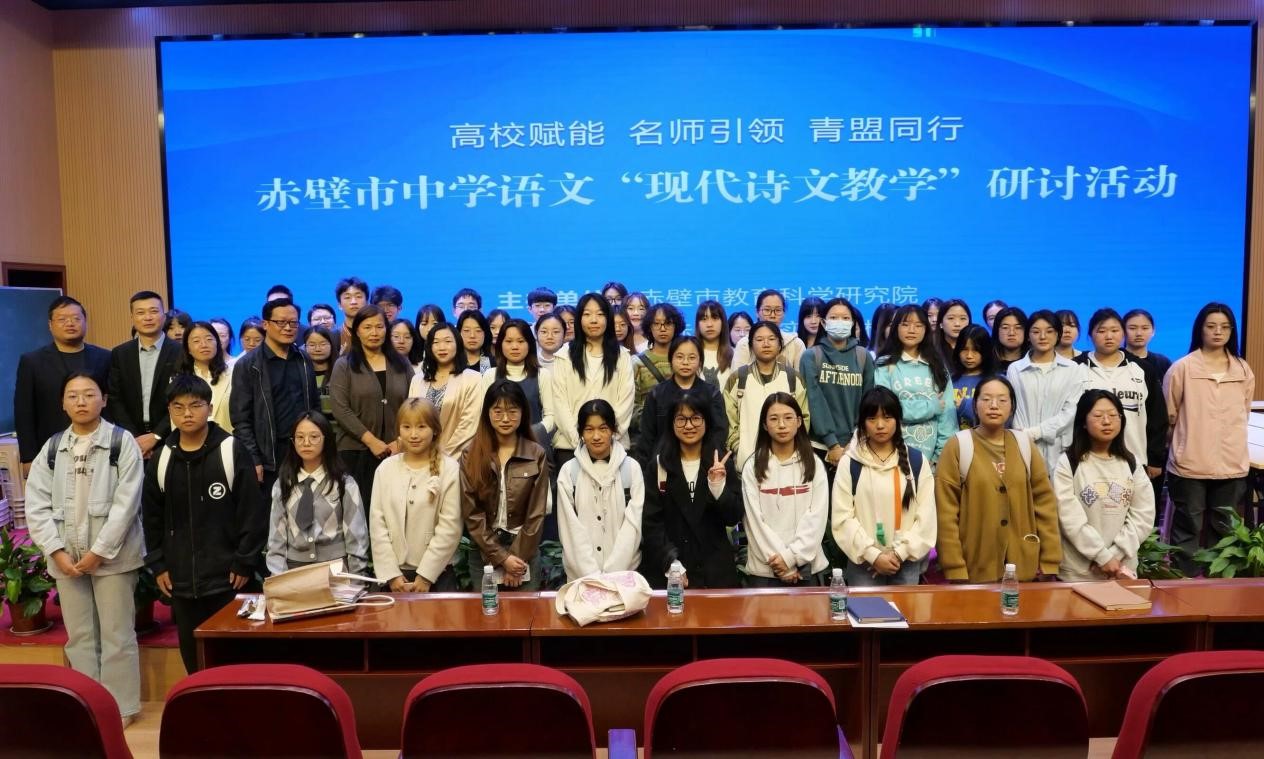 迟日江山丽,正是教研时。为帮助师范生更好地理解教师职业、提升教学技能,我院与赤壁市教育科学研究院于4月9日在赤壁市慧晟实验中学联合举办“高校赋能 名师引领 青盟同行——赤壁市中学语文 '现代诗文教学' 研讨活动”,院长郭彧师生一行80余人,赤壁市教育科学研究院、赤壁市慧晟实验学校、赤壁市青盟教师成员近20人共同参与了此次盛会。