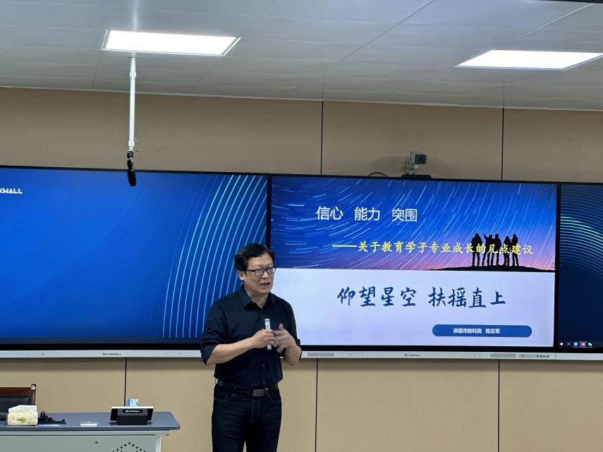随后,陈志军老师从“内卷与躺平”、“至暗与黎明”和“学习与实践”三方面对在场教育学子走进成长给出建议。对于内卷与躺平,陈志军老师强调要走出压力认知的误区,指出当今教育学子正面临学历贬值、绩点为王、专业迷茫和就业困难等困境,但切勿因此将积极向上的努力视为“内卷”,表示反对内卷可以,但不要反对努力,呼吁在场学生不断奋斗。