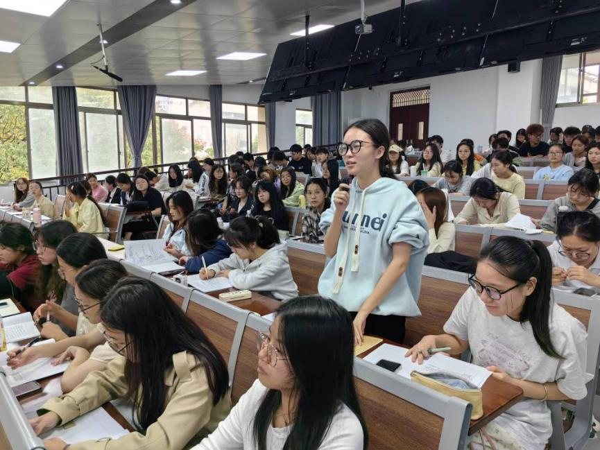 在互动问答环节,对于学生所提出的“如何让应试教育变得有趣?”“如何看待当下一些教师的表演式教学?”等问题,陈老师一一解答,他指出在应试教育中,教师应先丰富自身,在传播知识的过程中让教育形式多样化。而对于表演式教学,陈老师表示,我们需要正视这一现象,强调教育教学应当真实,反对虚假教学。
