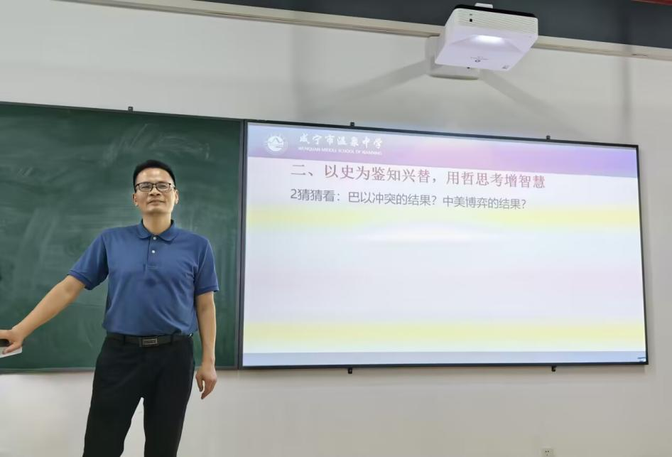 为了感受一线教学实际,历史专业师生还深入温泉中学,进行课堂观摩。课堂上,温泉中学教师柳佳新、杨金针对不同年级的学生采用不同的教学方法;同时运用多媒体、游戏、小组讨论的教学手段和方法,将枯燥的历史知识变得生动有趣,激发学生上课积极性;此外,他们还注重培养学生的思维能力和历史素养,站在宏观视角设计课堂,通过结构化教学引导学生主动探究历史背后的深层次原因。