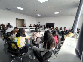 随后,吴总带领师生实地参观基地多功能直播间,详细讲解了不同场景的功能与应用逻辑:从满足日常带货需求的演播室场景、适合深度沟通的访谈式场景(供品牌高层领导参与直播使用),到支持背景特效制作的绿幕场景,全方位展现了品牌直播间“多维度服务”的特点。在岗位介绍环节,他结合实际案例,清晰梳理了直播产业链上的核心岗位体系,包括负责内容输出的主播、统筹现场流程的场控(涵盖直播前准备、直播中查单等工作)、把控整体运营的运营人员,以及灯光师、直播督导、商务对接等关键角色,让学生对行业岗位需求有了直观认知。