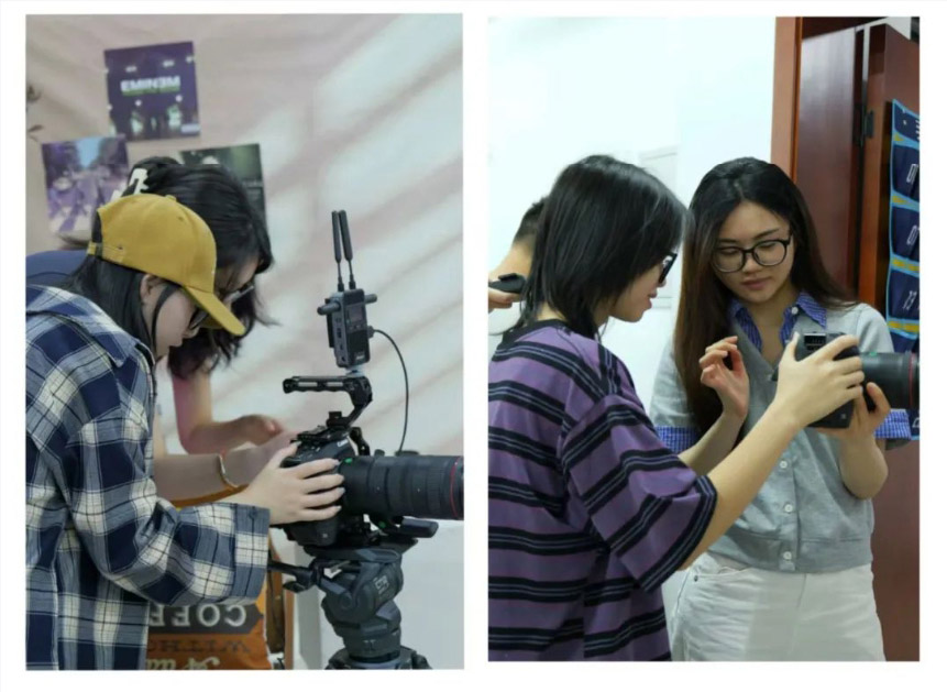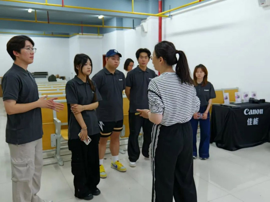 活动现场座无虚席,来自23级广播电视编导专业的同学们早早来到会场,在佳能技术团队的指导下,参与场地布置、设备调试等准备工作。同学们熟练地操作专业设备,架设多机位拍摄系统,布置灯光效果,展现出扎实的专业基础和良好的实践能力。