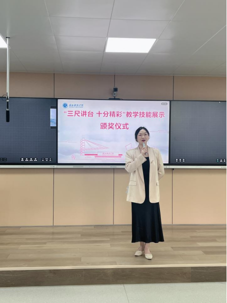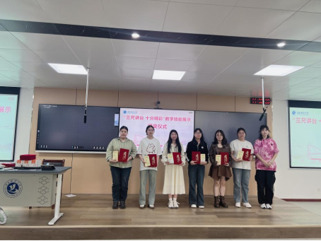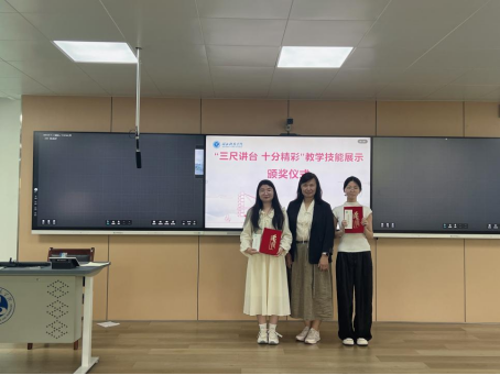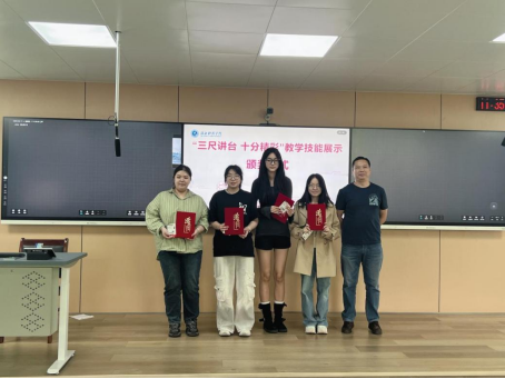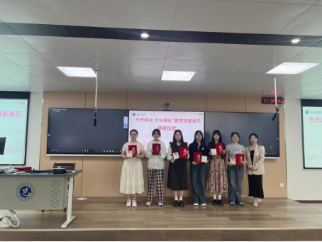 老师点评结束后,活动进入了激动人心的颁奖环节。根据评委们的综合打分,本次活动共评选出最佳板书2名、最佳教学设计2名、最佳课件2名、一等奖2名、二等奖4名、三等奖6名以及优秀奖若干。老师们依次为获奖同学颁发荣誉证书和奖品。获奖同学脸上洋溢着自豪与喜悦,台下的同学们也纷纷送上热烈的掌声和衷心的祝贺。