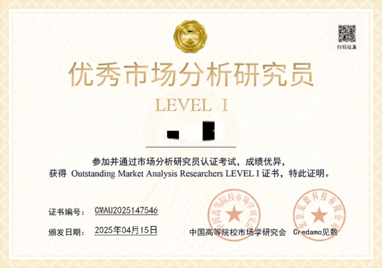 “市场分析研究员”证书(部分)