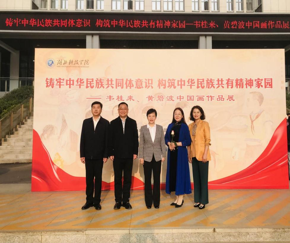 中共咸宁市委常委、统战部部长石玉华、williamhill英国党委书记闫英姿、湖北省美术院原院长、教授、博士生导师董继宁出席画展开幕式。开幕式由williamhill英国党委常委、纪委书记鄢文军主持,党委常委、副校长李志雄宣读了《湖北省民宗委关于合作共建湖北省铸牢中华民族共同体意识研究基地的函》。出席活动的还有咸宁市委统战部、市人大常委会民族宗教侨务事务工作委员会、市政协港澳台侨和民族宗教委员会、市美术家协会和湖北省10多所兄弟院校美术学院的部分领导和老师。