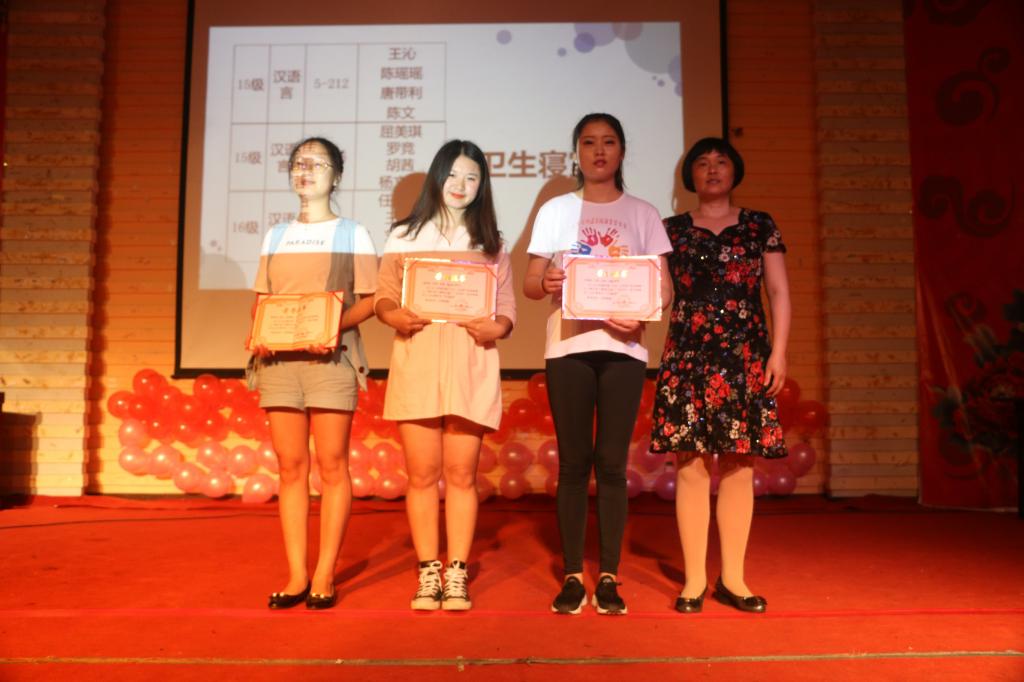 晚会首先颁发了优秀寝室奖,12个寝室或是因为干净卫生,或是因为寝室成员成绩优异等,获得了这项荣誉。