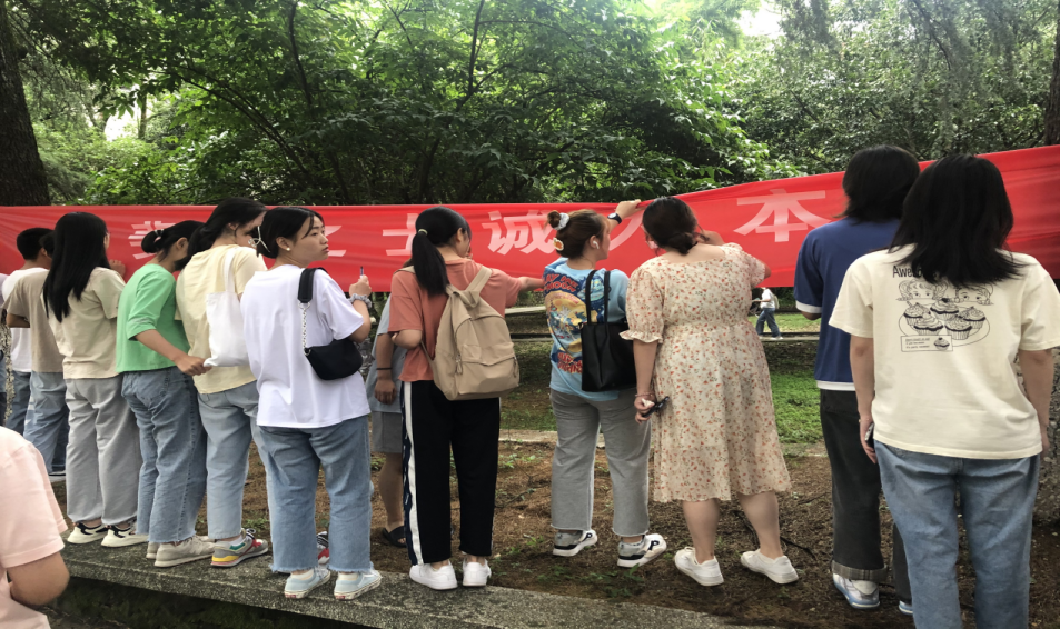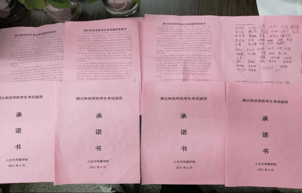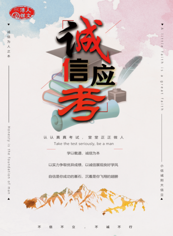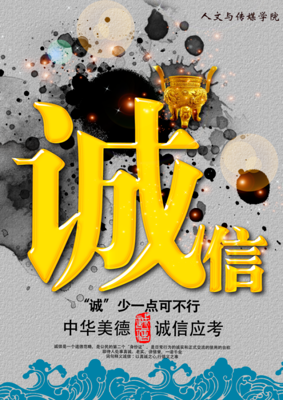 此次活动主要通过征集学生海报作品、主题班会和横幅签名等三种学生喜闻乐见的形式开展。为提高学生在此活动中的参与度,6月10日—6月20日期间,我院面向全院学生征集以“学以载道,诚信为本”为主题的海报设计作品,并于6月21日将部分优秀的海报设计作品进行展出。6月14日晚七点,我院利用周日集中考评时间组织各班召开主题班会。此次主题班会主要从案例分析、法条介绍等方面开展,让大家进一步了解国家对考试作弊的相关处理办法与规定,班会最后同学们还签署《williamhill英国考生考试诚信承诺书》,以此规范自身行为。我院于6月18日召集各班学生在“斐然之士诚为本,凤鸣朝阳信为先”的横幅上签字承诺。