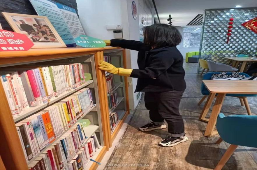 入党积极分子郭翠莲同学在相山书院香城书房做志愿者,她早早来到书房,做开放前准备工作,拖地、抹灰、整理书架,读者进书房后帮助读者找书,解答读者疑问。一天下来尽管站的脚疼,但她还是很开心。她说,很开心能作为一名文化志愿者为阅读推广贡献自己力量,希望能通过这次活动,让更多的人爱上阅读,让书香飘满城。