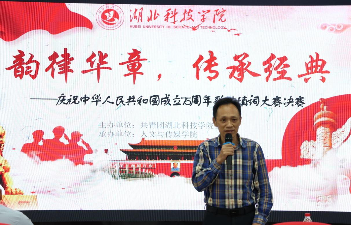 各组选手表演结束后,李爱国老师进行点评发言。他从唱功、动作、互动等各方面对各组选手进行点评,同时鼓励我校学生积极参加相关活动,大胆创作,在公共场合乃至社会中展现自我,以此来锻炼和提升自己多方面的能力。