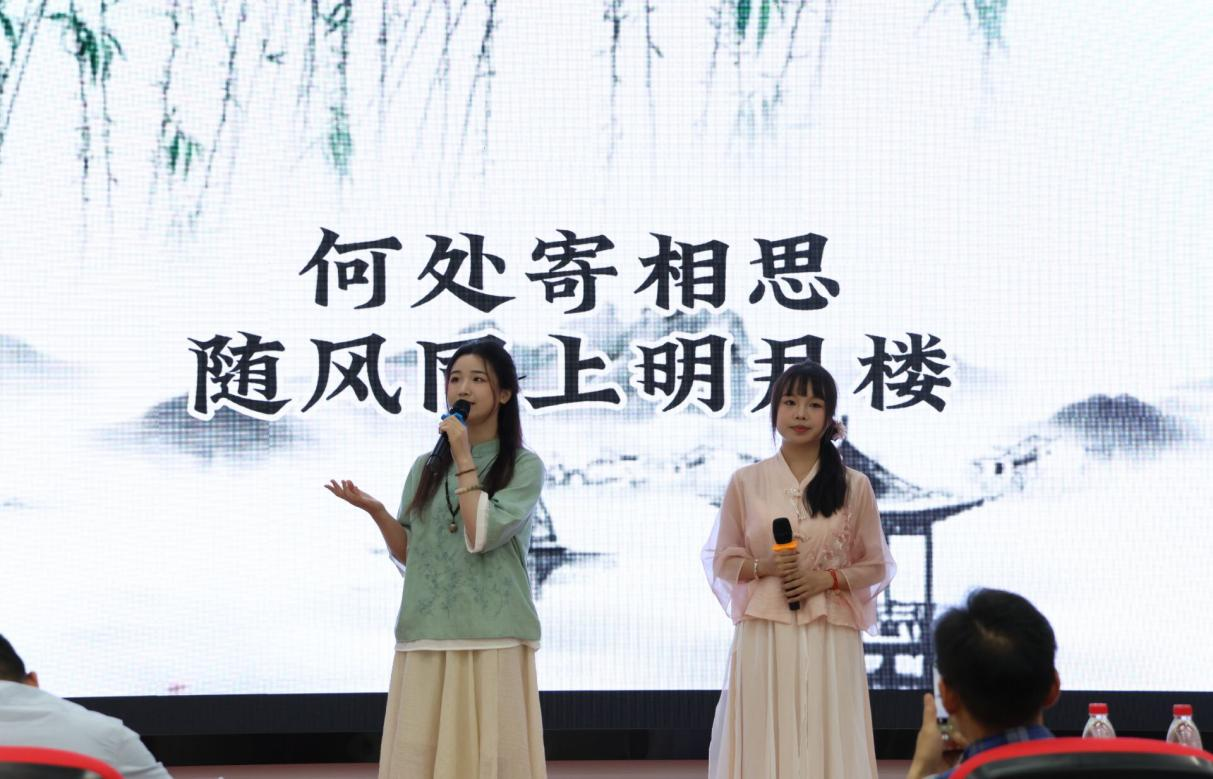 比赛过程中,各组选手用心用情演绎,尽情展现出自己所改编的歌曲感情、歌曲特色以及团队风采,给评委和观众带来一场精彩的听觉盛宴,营造积极向上的音乐氛围。同时,为增强观众的参与体验,营造更为热烈的现场氛围,本次活动精心设计了互动游戏环节。在这一环节中,观众将基于主持人所给出的诗句线索,竞相回答出对应的下句。现场观众同学的热情参与,极大提升了活动的趣味性,也与本次大赛的核心宗旨——弘扬古典诗词之美,提升古诗词典的传播力与影响力紧密契合,共同书写了一场古诗词的盛宴。