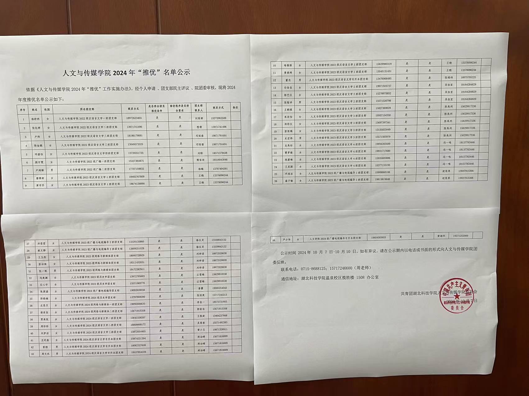 william英国中文2024年秋季学期共青团“推优”名单公示