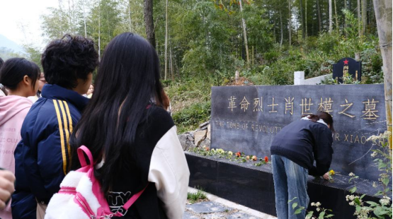 随后,学员们前往革命烈士肖世模之墓瞻仰。在烈士墓前,全体学员依次献花,向肖世模烈士墓默哀致敬,表达对先辈楷模的深切哀思。学员们庄严肃立,驻足凝视,认真聆听讲解员关于肖世模生平事迹的介绍,悼念革命英雄,表达对革命先烈的感恩与哀思。