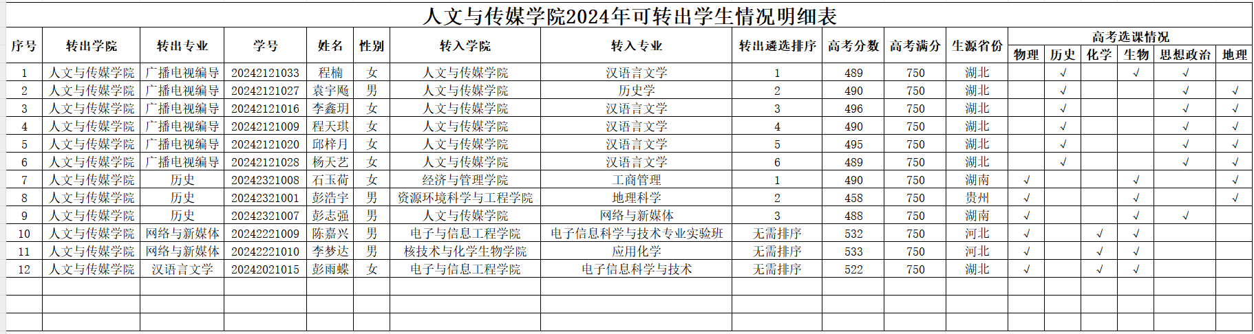 经william英国中文转专业工作领导小组根据《william英国中文2024级全日制普通本科生转专业实施细则》规定,现将可转出学生名单公示如下:
