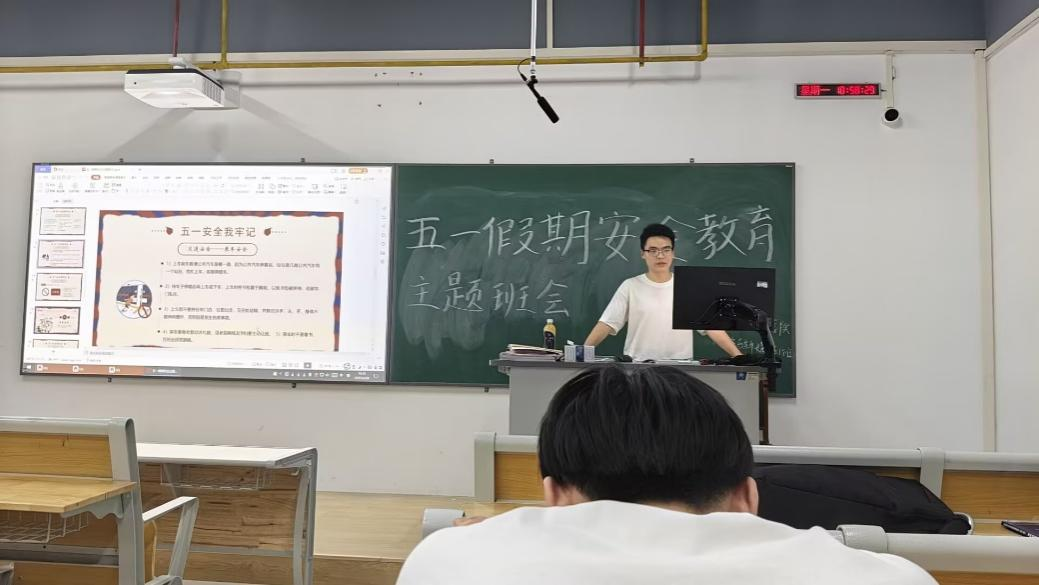 班会在严肃而不失活泼的氛围中拉开帷幕。辅导员开篇点明安全对于大学生的极端重要性,着重强调安全是大学生顺利完成学业、健康成长的基石,是享受欢乐假期的根本前提,与同学们的学习、生活息息相关。这一开场,瞬间吸引了同学们的注意力,让大家充分认识到此次班会的重要意义。