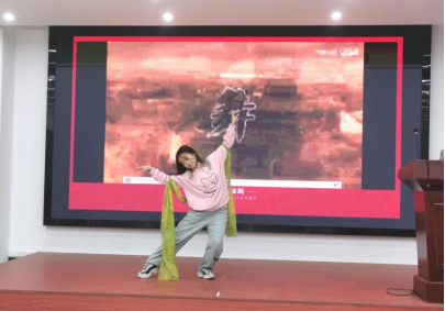 气氛渐入佳境,刘雯嘉同学翩然登台,献上一段优雅而专业的独舞。她随着节奏轻盈展姿,脚尖踮起时如风拂细柳,跃动间仿若蝶翼舒卷,台下响起阵阵赞叹与掌声。在飘扬的丝带与流转的光影中,那一刻,青春在她足尖绽放成沉静而璀璨的花。