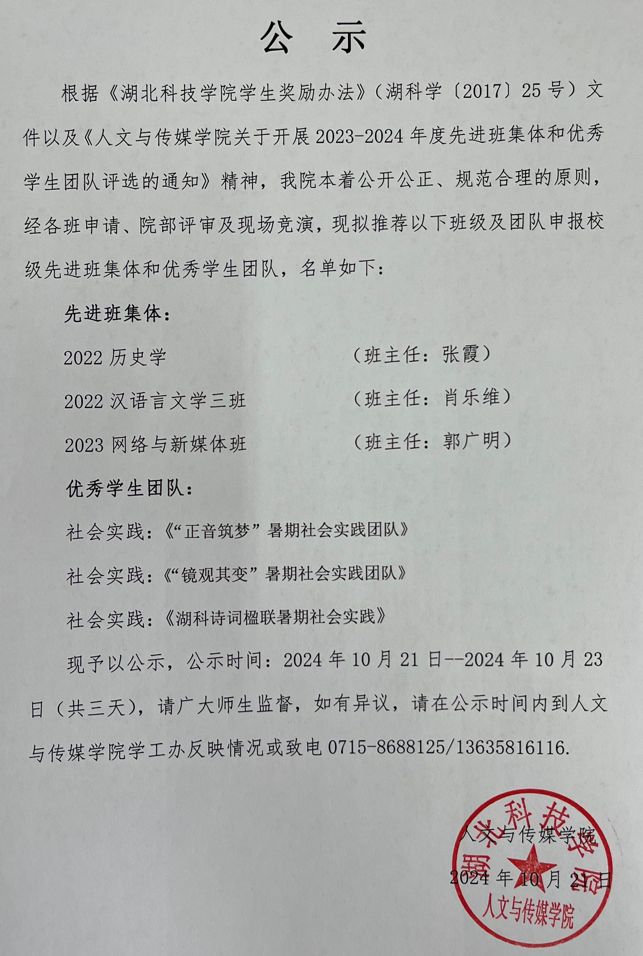 william英国中文2023-2024学年度先进班集体和优秀团队公示