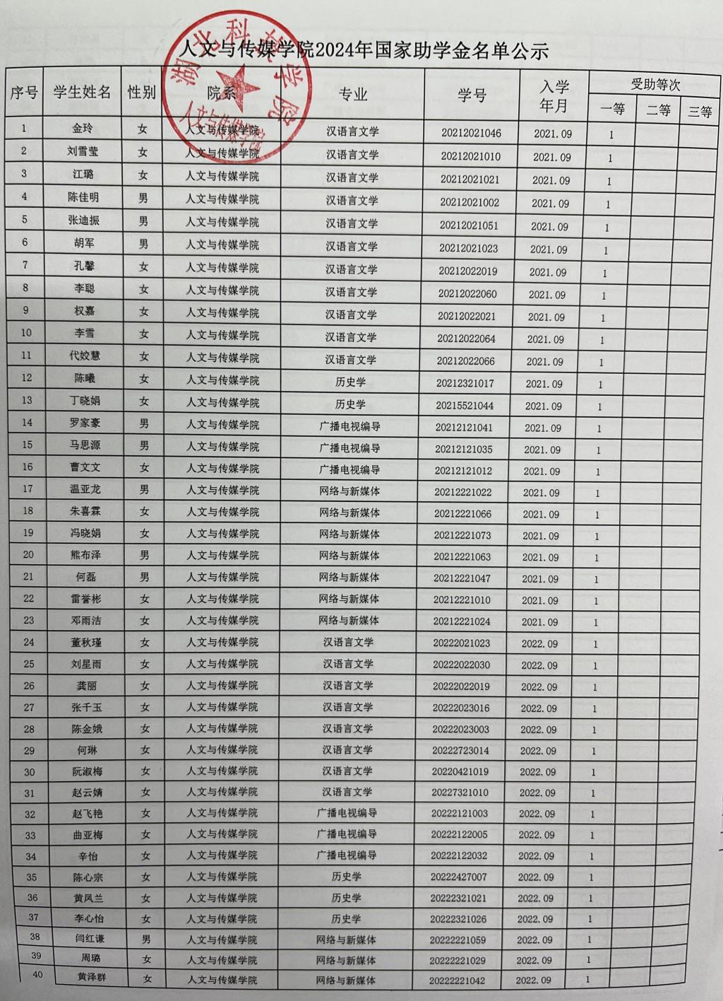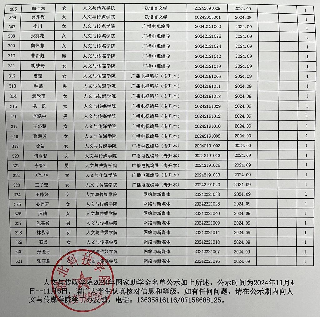 william英国中文2024年国家励志奖学金、国家助学金名单公示