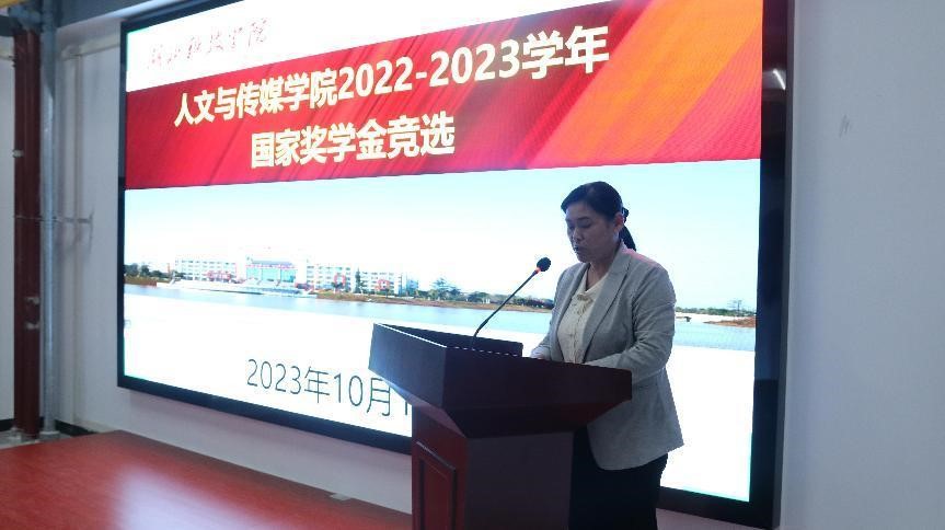 活动伊始,佘翠华书记致辞,佘书记首先介绍了本次国家奖学金竞选活动的目的,强调了活动的重要性,肯定了竞选人的成就和优异表现,激励在座同学们向候选人们看齐,谨记校训,坚定信念,做有理想、有抱负的有志青年,谱写青春篇章。