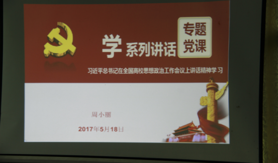 活动最后,支部书记周小丽讲党课,要求每位学生党员都要做政治合格党员,努力做社会主义事业的建设者和可靠的接班人。同时,针对五月的心理健康“寝室人际关系”活动,希望每位党员在寝室卫生和人际关系上做好表率,做寝室矛盾的“和事者”。至此,此次活动圆满结束。