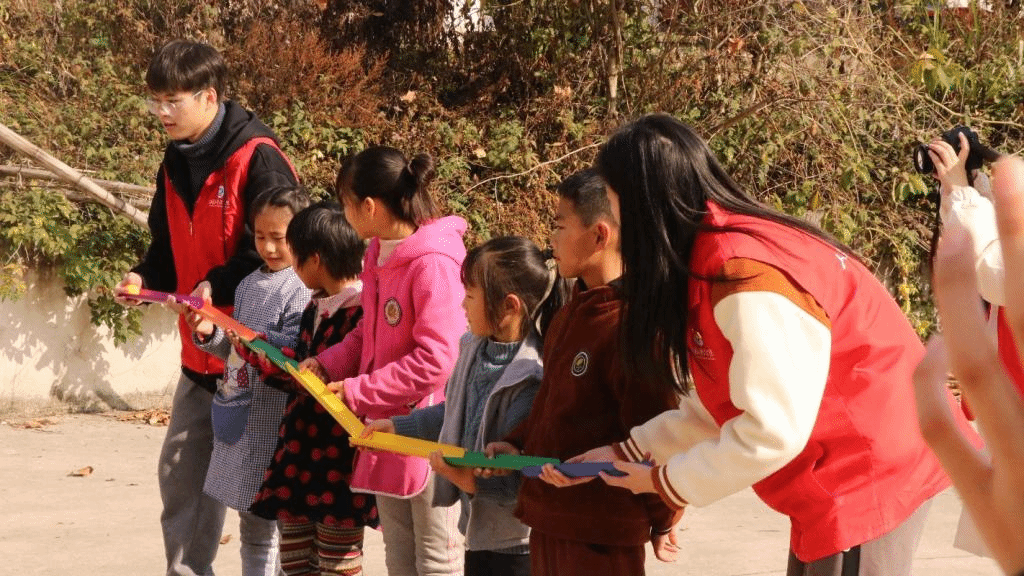 在体育活动环节,郭老师首先带大家做热身活动,之后志愿者带领学生分组活动。志愿者和小朋友们一起进行丢手绢、跳大绳、滚铁环、背夹气球和乒乓球接力等活动。游戏是释放天性,拉近心与心距离的最好方式。在玩耍的过程中,志愿者也会主动照顾小朋友们的情绪,关注他们的需要,拿出一些提前准备好的活动材料吸引他们的注意力,让他们真切体会到体育项目所带来的乐趣,并能在这过程中提升肢体协调能力与团队合作能力,帮助小朋友们更好地成长。