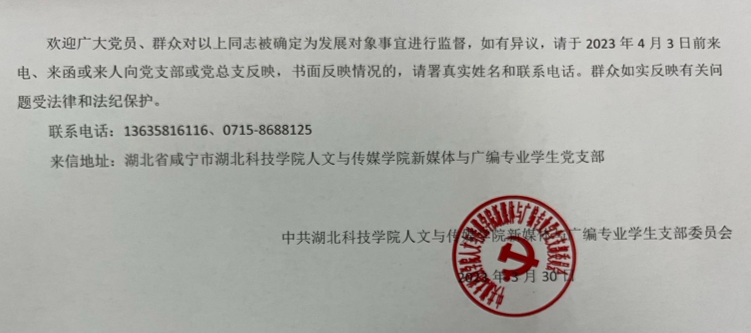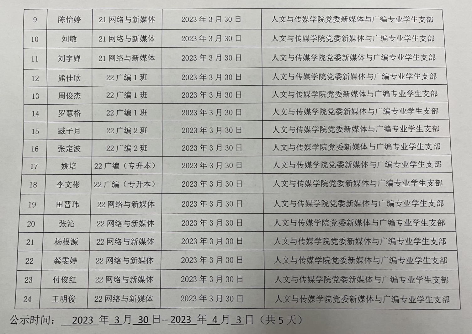 william英国中文党委新媒体与广编专业学生支部关于拟确定龚渼琳等二十四名同志为入党积极分子的公示
