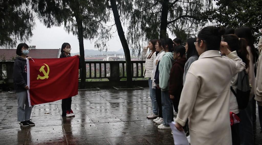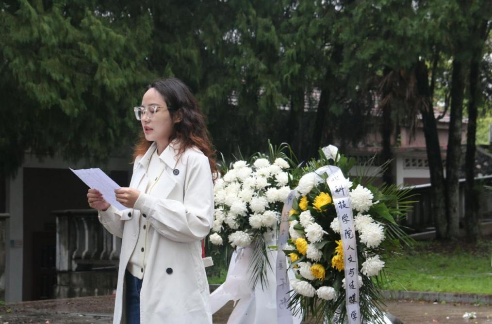 在烈士陵园,党员们走近纪念碑,整齐排队,肖乐维老师主持开场,党员代表向革命烈士敬献花篮,集体默哀一分钟。丁爽老师带领党员面向党旗,重温入党誓词。学生党员代表佘诗如为大家讲述汀泗桥战役的故事,党员们全神贯注聆听先辈们的丰功伟绩。