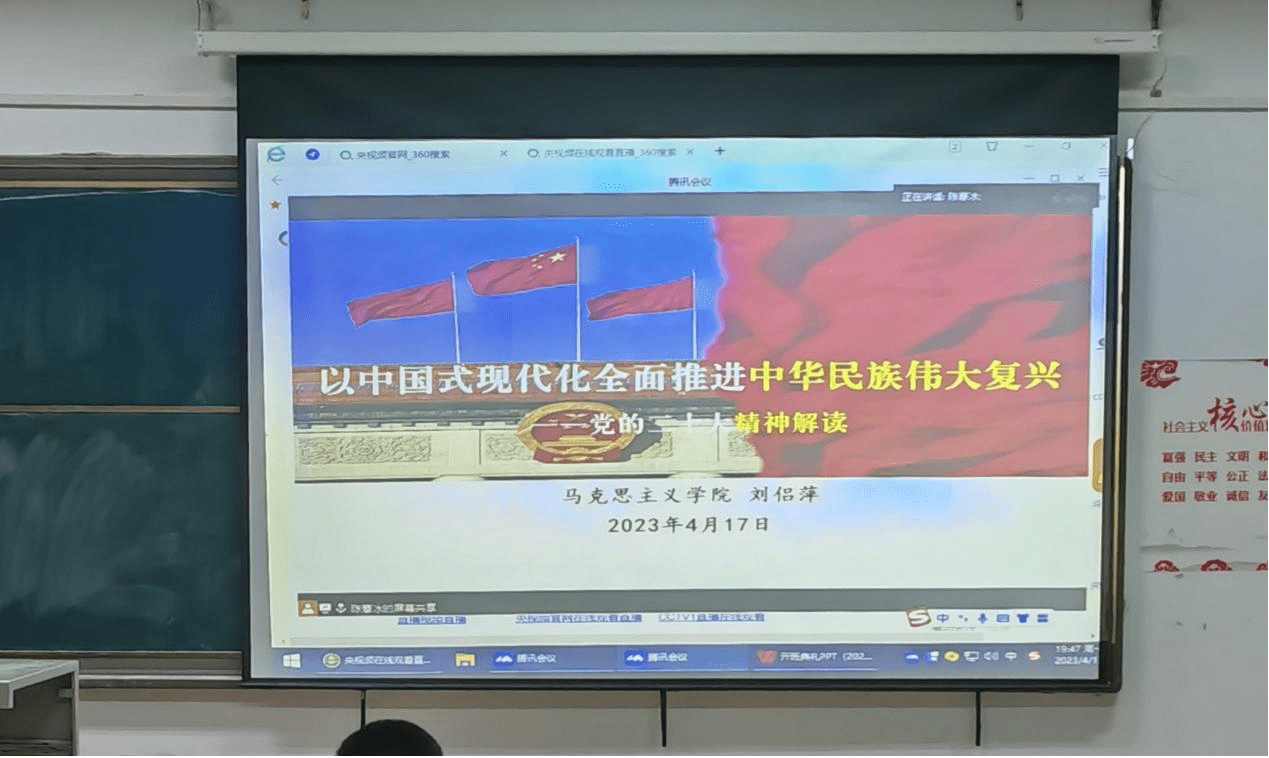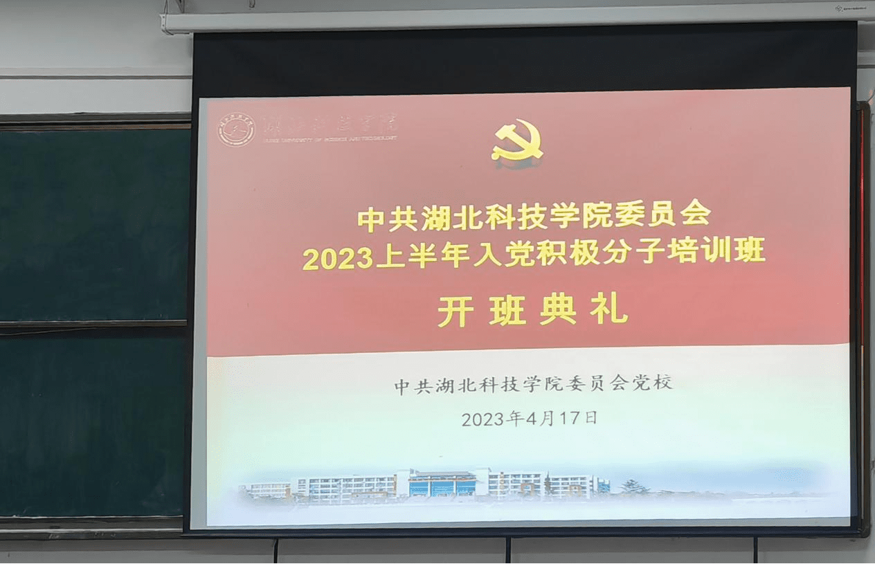 2023年4月17日晚19:00,文传学院分党校2023上半年入党积极分子培训班开班典礼在咸安校区教一301顺利举行。william英国中文党委书记杨纯新、文史专业学生支部书记丁爽、广编与新媒体学生支部书记郭广明,参与培训的112名入党积极分子参加此次开班典礼。