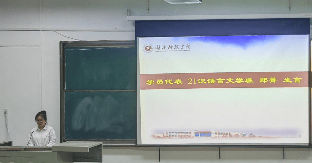 学员代表2021级汉语言文学一班郑菁同学发言,郑菁同学代表同学们表达了认真、严肃参与培训的态度和决心。班主任丁爽老师介绍了培训班的教学安排,提出了明确的纪律要求,表达了对同学的期望和祝福。