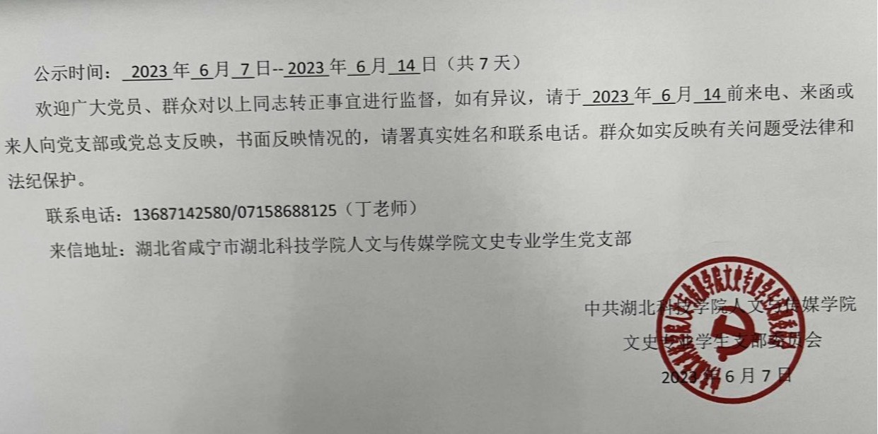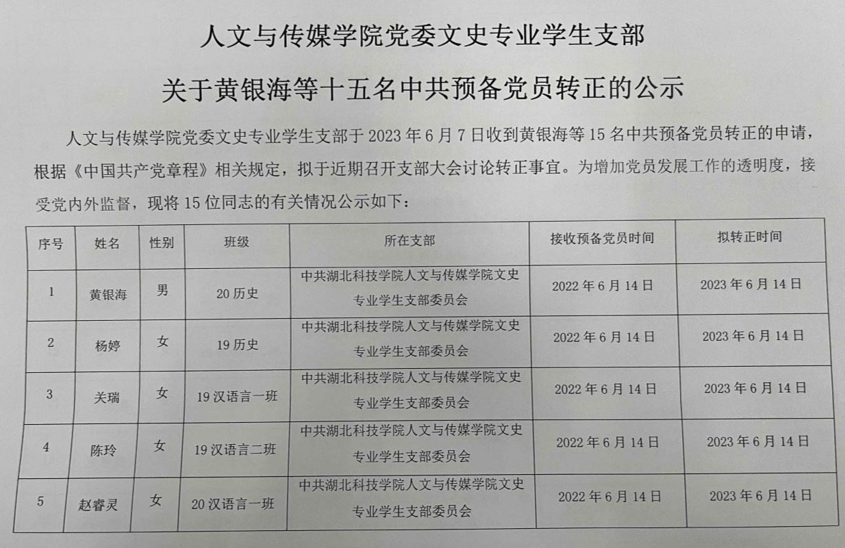 william英国中文党委文史专业学生支部中共预备党员转正公示