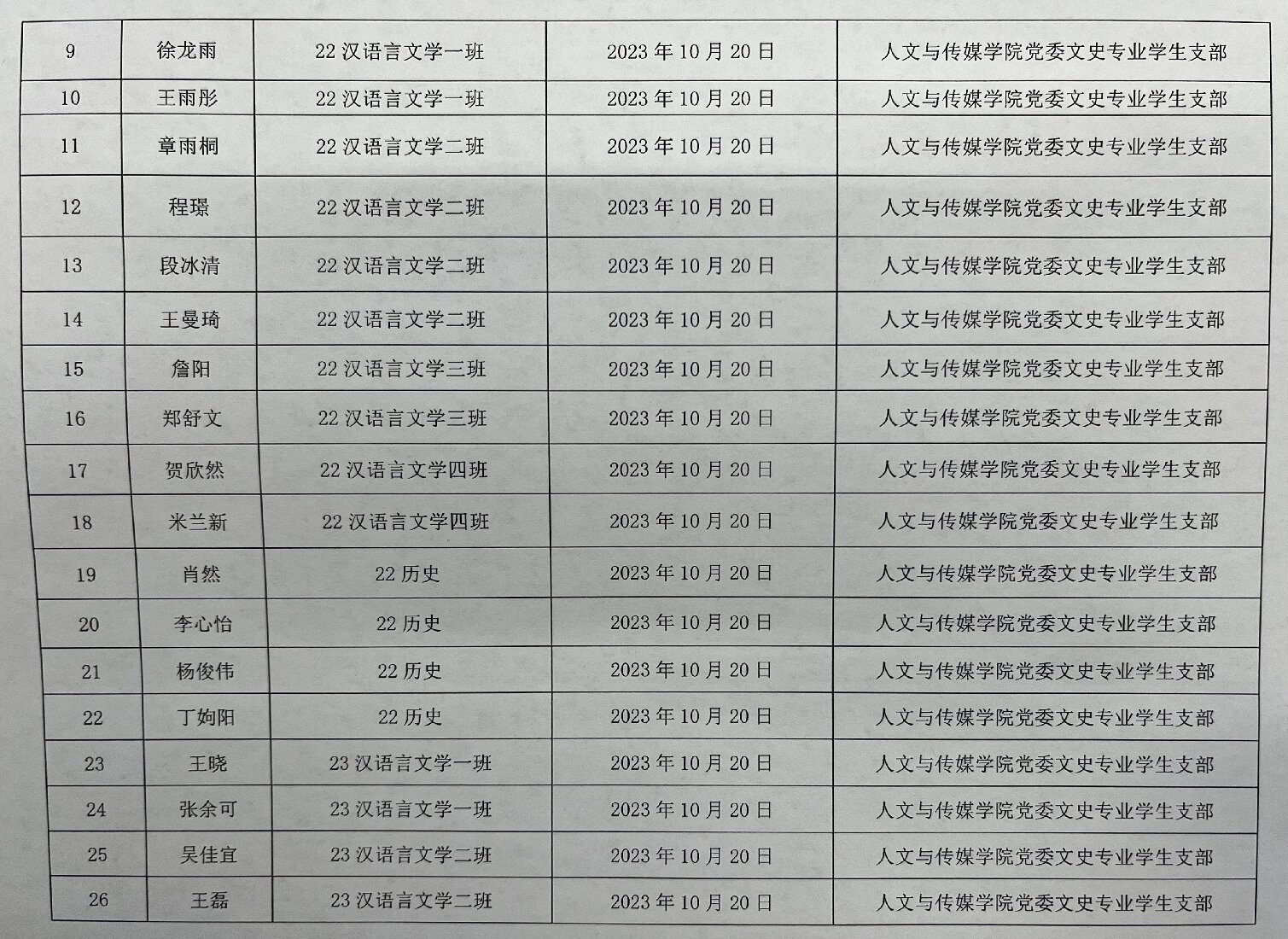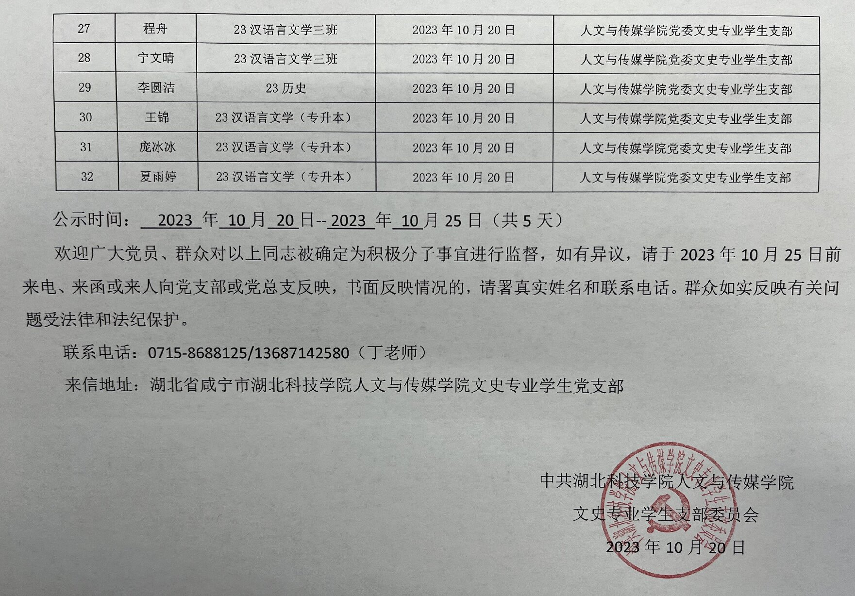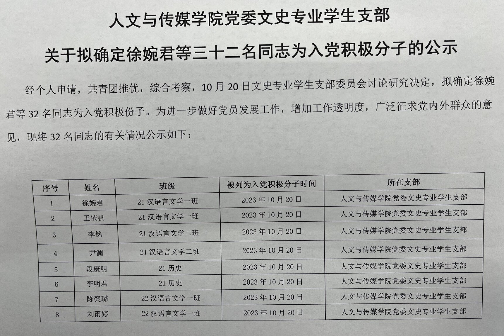 william英国中文党委文史专业学生支部关于拟确定徐婉君等三十二名同志为入党积极分子的公示