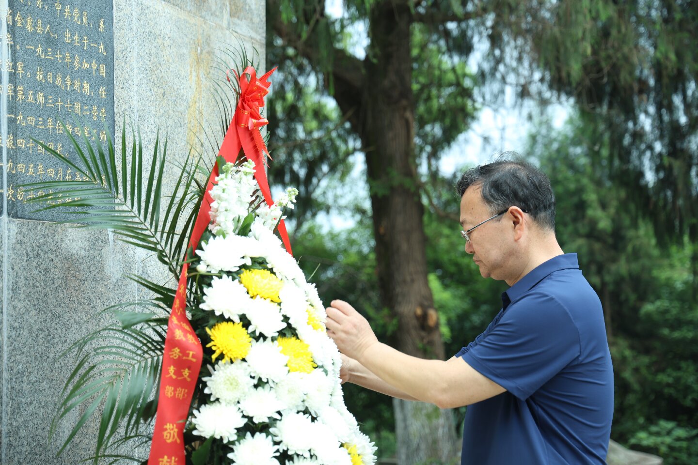 活动中,党员们参观陆水烈士陵园,瞻仰烈士墓碑,并向革命烈士纪念碑敬献花篮、集体鞠躬致敬。党委常委、副校长白育庭亲自整理花篮缎带,表达对革命先烈的崇高敬意和深切缅怀。接着,在教务支部书记张利平的带领下,全体党员齐声重温入党誓词,誓言不忘初心、牢记使命,为党和人民的事业不懈奋斗。