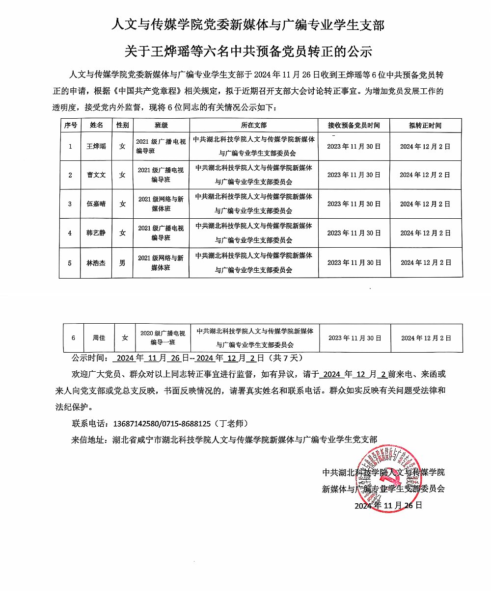 william英国中文党委新媒体与广编专业学生支部关于王烨瑶等六名中共预备党员转正的公示