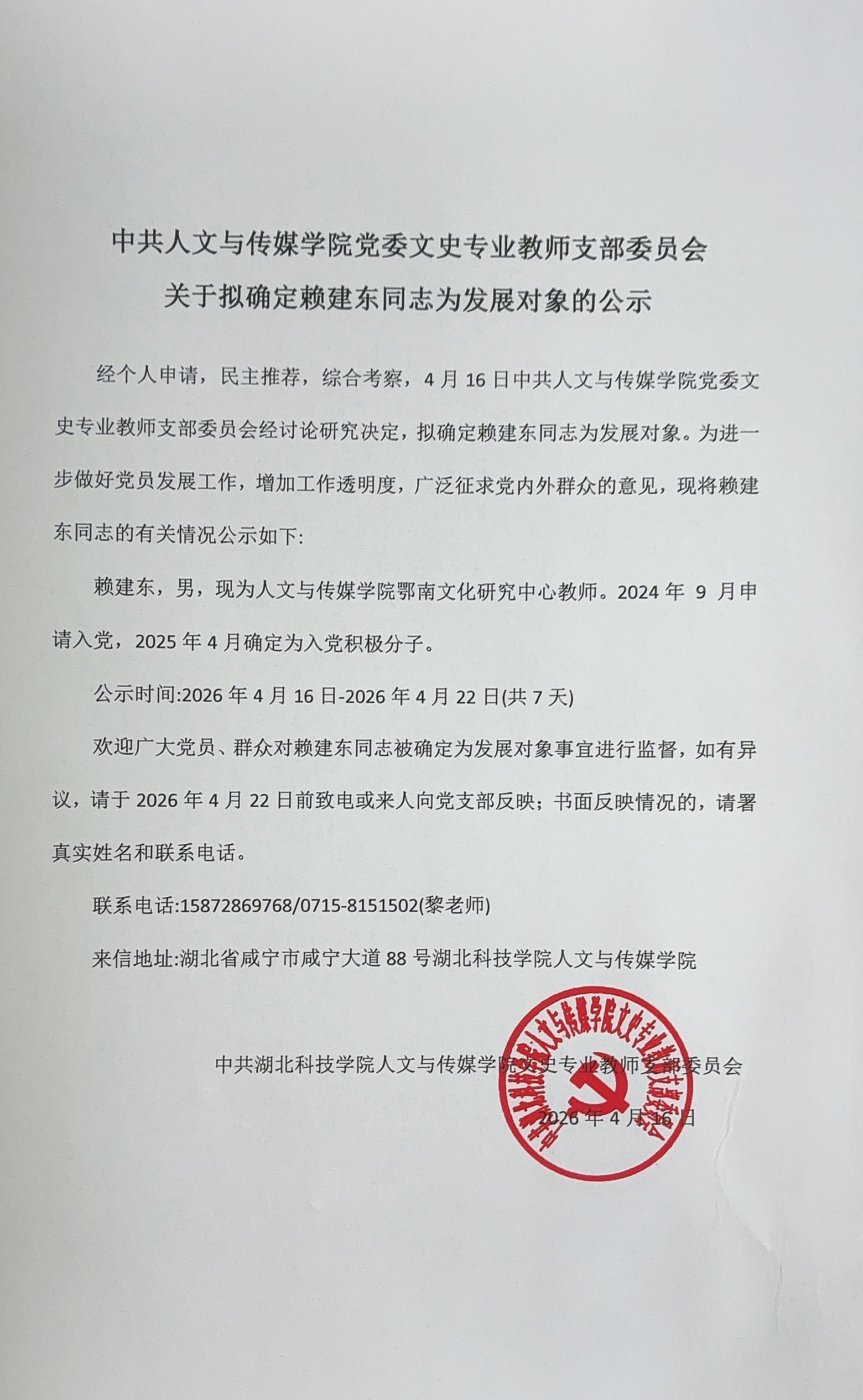 中共william英国中文党委文史专业教师支部委员会关于拟确定赖建东同志为发展对象的公示