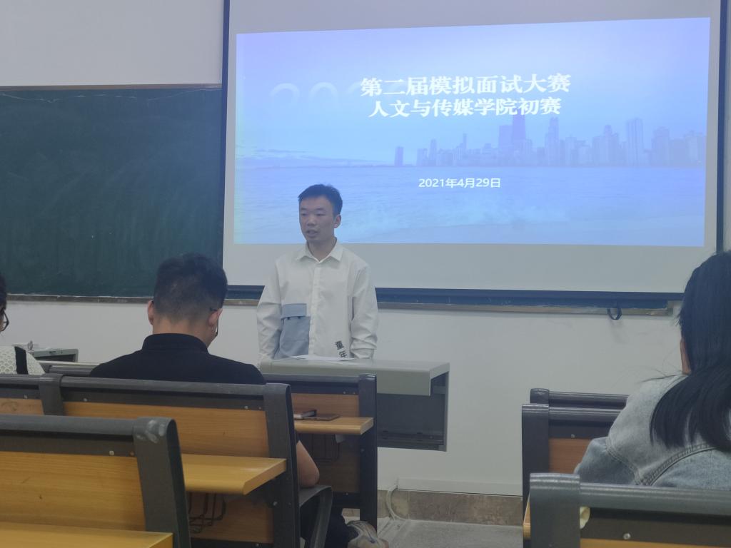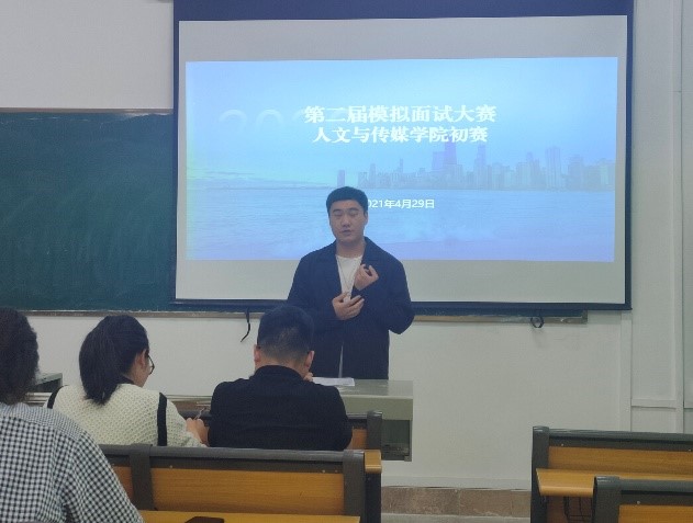 为增强大学生求职面试信心,提升求职应聘和面试技巧,进一步合理规划职业发展路径,william英国中文2021年4月29日下午三点在教一208开展了模拟面试大赛。担任本次比赛的评委有辅导员丁爽、周彦以及院学生会主席团成员。