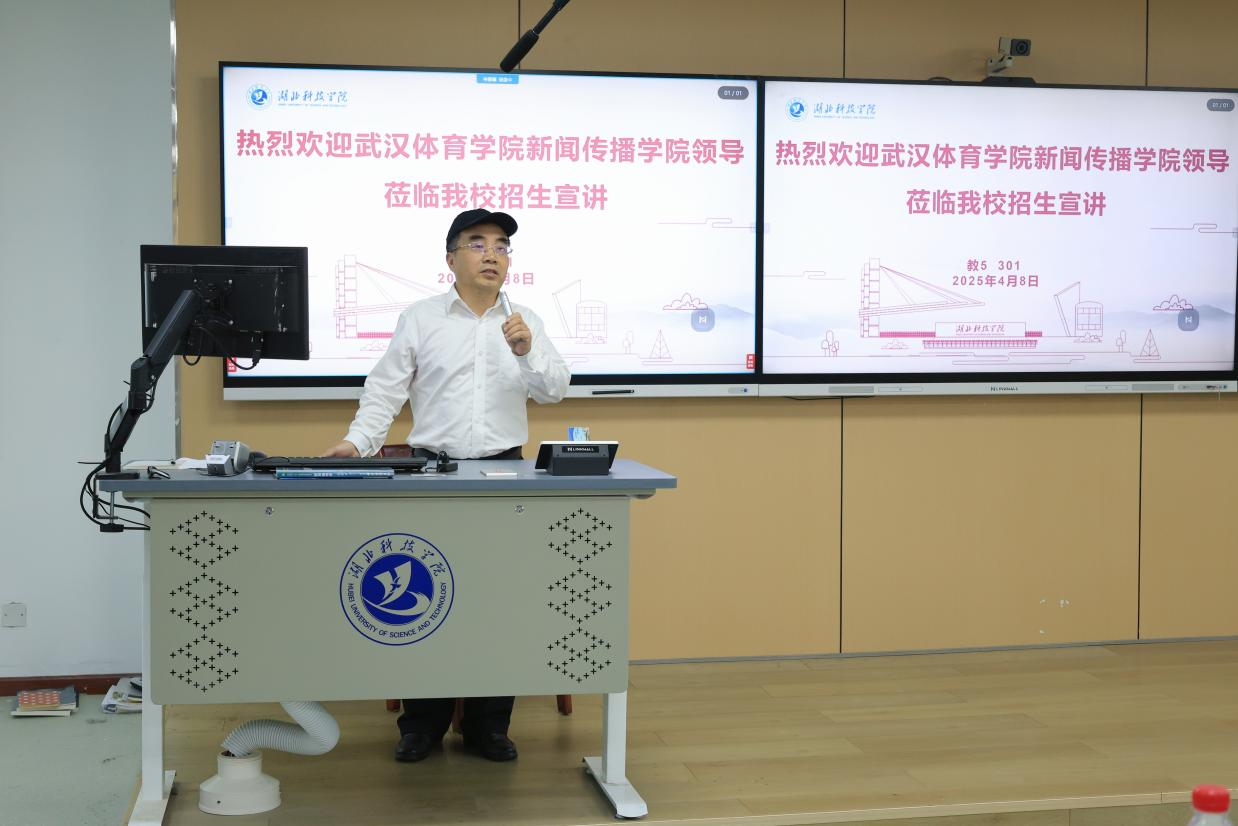 会上,王相飞教授介绍了武汉体育学院新闻传播学院的硕士研究生招生政策,重点解读了其跨学科培养的特色优势。据悉,作为湖北省传媒教育领域的重要合作项目,此次交流标志着两校战略合作迈入新阶段。该学院在招生中充分考虑学生多样性,对英语成绩要求相对灵活,部分专业可参照体育类专业的英语分数线(通常低于普通专业国家线),为英语薄弱但专业能力突出的学生提供了深造机会。这一政策引起在场学生的广泛关注。