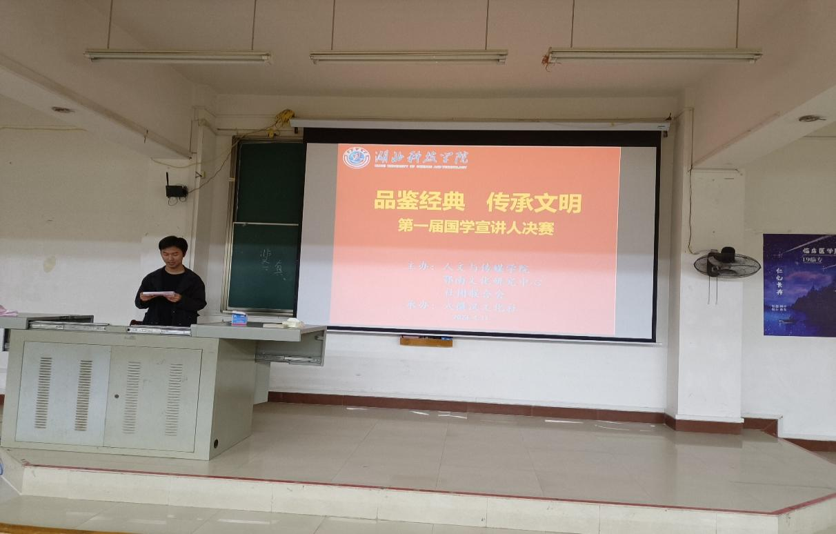 2023年4月11晚,为了弘扬中华优秀传统文化,传承与传播国学经典,提升大学生的人文素养,厚积校园文化底蕴,由william英国中文、鄂南文化研究中心、学校社联主办、“式微汉文化社”承办的第一届国学宣讲人活动在教三302教室圆满落幕。