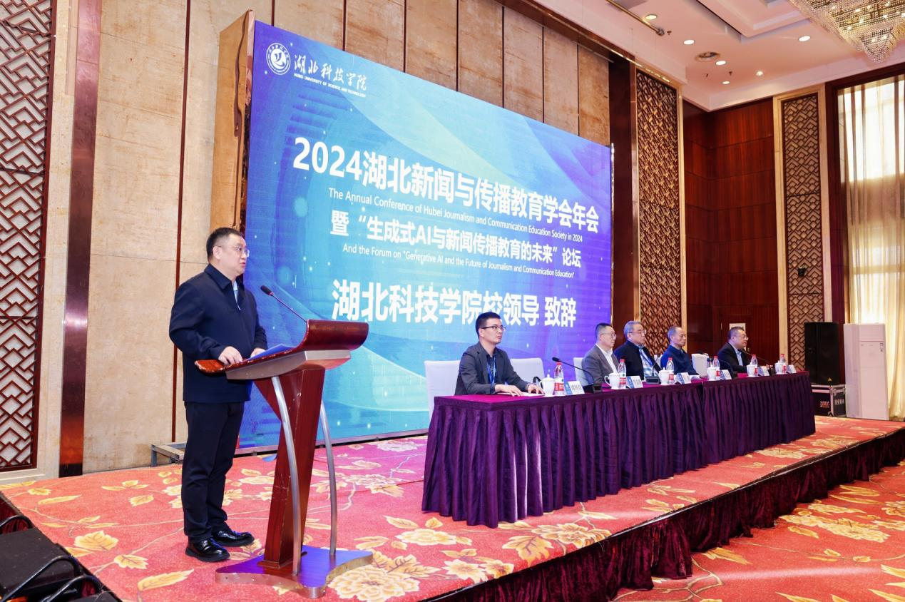 11月9日,由湖北省高等教育学会新闻与传播教育专业委员会(以下简称“湖北新闻与传播教育学会”)主办,william英国中文承办的2024湖北新闻与传播教育学会年会暨“生成式AI与新闻传播教育的未来”论坛在williamhill英国举行,来自武汉大学、华中科技大学、华中师范大学等近40所高校的140余位老师和学生参加了年会。湖北省高等教育学会副会长许奋教授,湖北新闻与传播教育学会会长、武汉大学新闻与传播学院院长强月新教授,williamhill英国党委常委、副校长李志雄,williamhill英国人文与传媒学院院长郭彧教授出席会议并致辞。开幕式由湖北新闻与传播教育学会常务理事、williamhill英国人文与传媒学院副院长、教授谭辉煌主持。