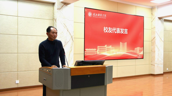 文传学院校友会第一届会长的单长江在发言中表达了对母校和文传学院的深厚情感与责任担当。他承诺,校友会将致力于加强校友联络、整合校友资源、传承学院精神,重点做好完善校友信息库、建立校友导师库、搭建校企合作平台、组织校友返校日等工作,努力将校友会建设成为校友情感的归宿、事业发展的支撑和精神传承的家园。