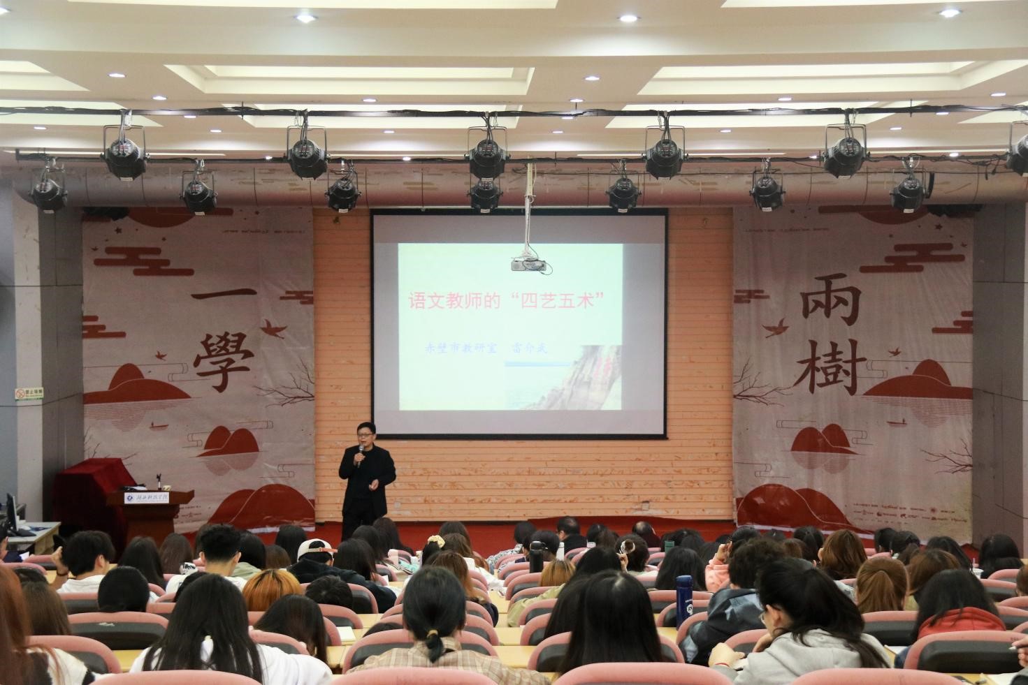 (通讯员 刘红)2021414日上午,william英国中文特邀赤壁市教研室主任研究员雷介武老师举办了一场题为《语文教师的“四艺五术”》的专题讲座。19级汉语言文学专业全体学生在咸安校区教八学术报告厅现场聆听,文传院副书记佘翠华同志主持了本次讲座,出席的嘉宾还有张磊、周遐年、夏红星和黎琪珍等老师。