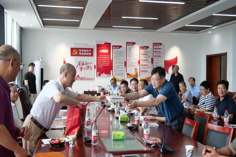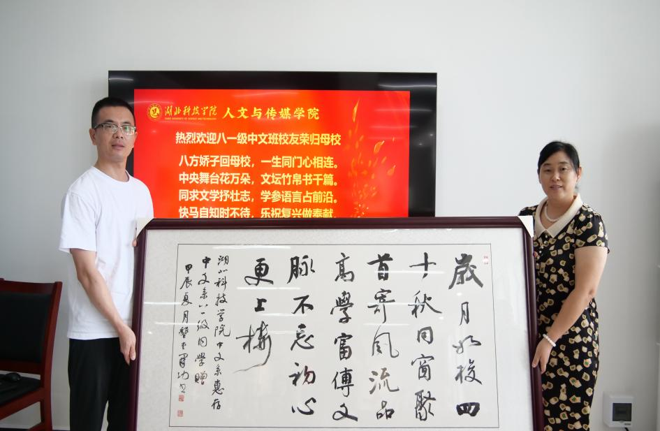 座谈会上,八一级中文班班主任戴义德对八一级中文班全体同学的成长表示由衷欣慰与自豪,他叮嘱同学们不忘初心,打磨文字,老当益壮,再接再厉。随后,原湖北省人民政府法制办副主任、八一级中文班任课教师王桂华向在座校友赠书,以及八一级中文班全体校友向我院赠送了一幅书画作品以表示他们对母校的感恩与祝福。最后,原咸宁市政协副主席、八一级中文班任课教师张昌武作总结发言。他指出四十年风雨兼程,我们或在学术的殿堂深耕细作,成为传道授业的师者;或在社会的广阔舞台上挥洒汗水,用文字的力量影响世界;更有人在平凡的生活中默默耕耘,用爱与责任书写着属于自己的篇章。无论身处何方,那份对母校的深情厚谊,对中文系的无限眷恋,始终是我们心中最温柔的牵挂。祝愿在座的每一位老师、同学身体健康,家庭幸福!祝愿我们的友谊地久天长,期待下一次更加美好的相聚!